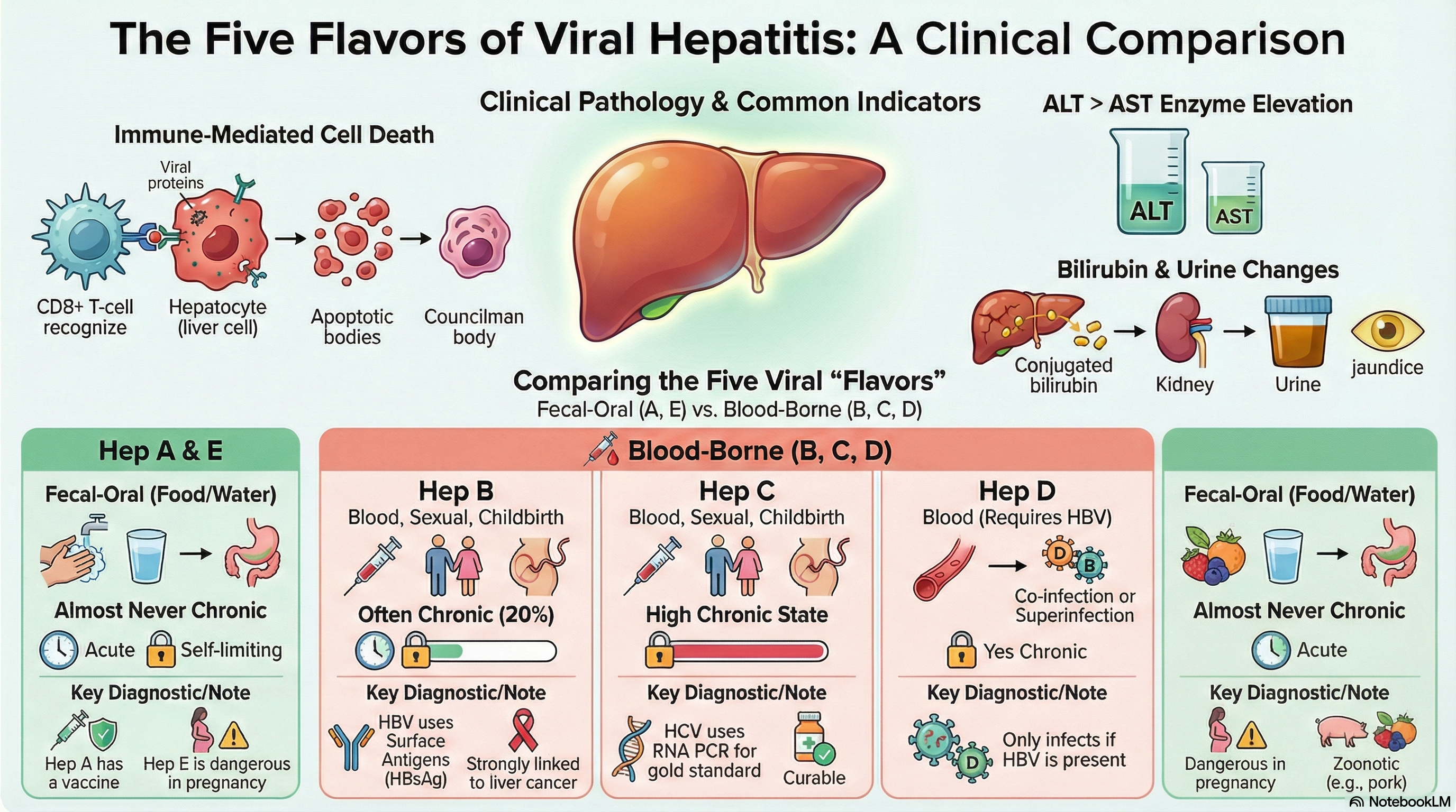 The five "flavors" of viral hepatitis remind us that the human body is a theater of constant, invisible conflict. From the "spooky" window phase of HBV to the parasitic nature of HDV, these viruses have evolved sophisticated ways to bypass our defenses.